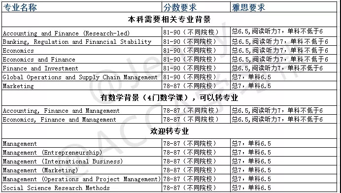 今年停开了Msc Economic,Accounting and Finance这个专业。这两个专业被很多学生戏称为转专业“三明治课程”。这些专业对入读学生的专业背景没有要求,可是!要求学生有较高的数学能力,最好有4门以上数学课。